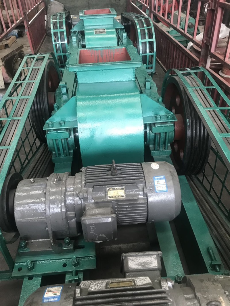 當(dāng)物料進(jìn)入機器的破碎腔以后,物料受到轉(zhuǎn)動輥軸的嚙力作用,使物料***通過兩輥之間,同時受到輥軸的擠軋和剪磨,物料即開始碎裂,碎裂后的小顆粒沿著輥子旋轉(zhuǎn)的切線,通過兩輥軸的間隙,向機器下方拋出,超過間隙的大顆粒物料,繼續(xù)被破碎成小顆粒排出。
