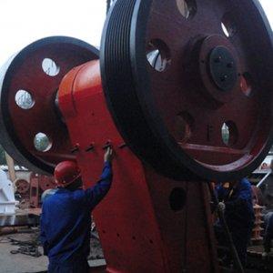 顎式破碎機俗稱顎破,又名老虎口。由動顎和靜顎兩塊顎板組成破碎腔,模擬動物的兩顎運動而完成物料破碎作業(yè)的破碎機。顎式破碎機在礦山、建材、基建等部門主要用作粗碎機和中碎機。按照進料口寬度大小來分為大、中、小型三種,進料口寬度大于600MM的為大型機器,進料口寬度在300-600MM的為中型機,進料口寬度小于300MM的為小型機。顎式破碎機結(jié)構(gòu)簡單,制造容易,工作可靠。顎式破碎機的工作部分是兩塊顎板,一是固定顎板(定顎),垂直(或上端略外傾)固定在機體前壁上,另一是活動顎板(動顎),位置傾斜,與固定顎板形成上大下小的破碎腔(工作腔)?;顒宇€板對著固定顎板做周期性的往復(fù)運動,時而分開,時而靠近。分開時,物料進入破碎腔,成品從下部卸出;靠近時,使裝在兩塊顎板之間的物料受到擠壓,彎折和劈裂作用而破碎。